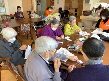 「目が悪くてなかなか糸が通らないわ」「やっと思い出してきたわ」と話されながらも皆さんで協力しながら、