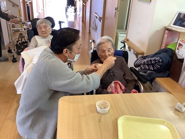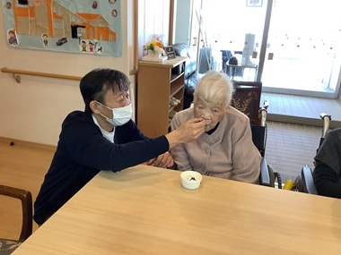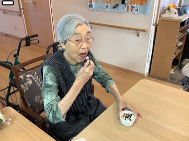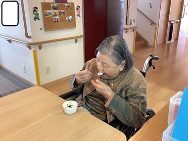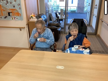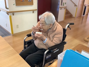 寒さが強くなって来た今日この頃ですが、暖暖の里では入居者の方に【チョコバニラアイス】を提供し、暖かい所で召し上がっていただきました🍨