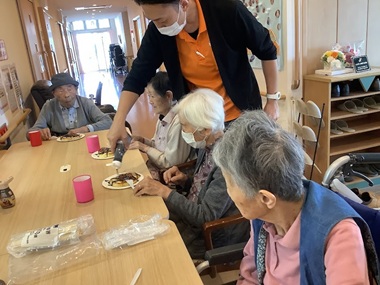 暖暖の里は甘い香りと入居者の方の笑顔に包まれておりました。やっぱり甘いものは別腹ですね~