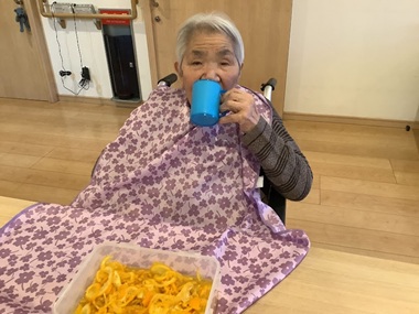 入居者様のご家族からいただいた柚子を砂糖漬けにして、【柚子茶】を作り召し上がっていただきました😋