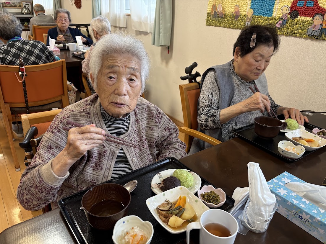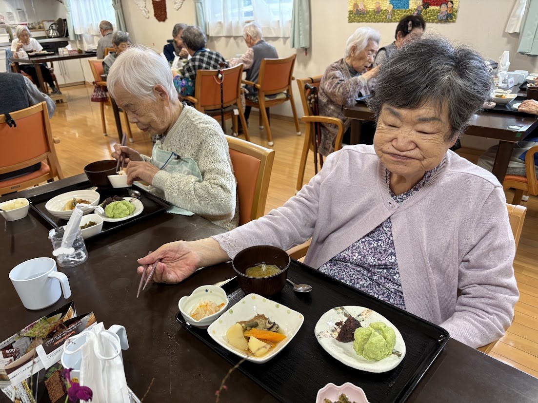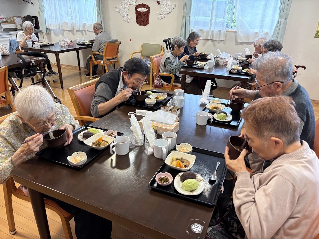 秋分の日+お誕生日メニュー🍱 投稿公開日:2025年9月23日 みなさんこんにちは! 秋のお彼岸!秋分の日!ですね~ 今日の昼食は 9月お誕生日の方のリクエストとお彼岸のメニューを一緒にした ”おはぎ” ”あんこ”と”ずんだ2種類 ずんだは豆をつぶした手作りです(^O^)/ 「いぎなり美味いね~」 「むかし作った頃の事を思い出したわ~」 みなさん満足されていらっしゃいました。 文責:板橋 その他の記事を読む 前の投稿敬老会💃 次の投稿お散歩🚶♂️➡️🚶➡️