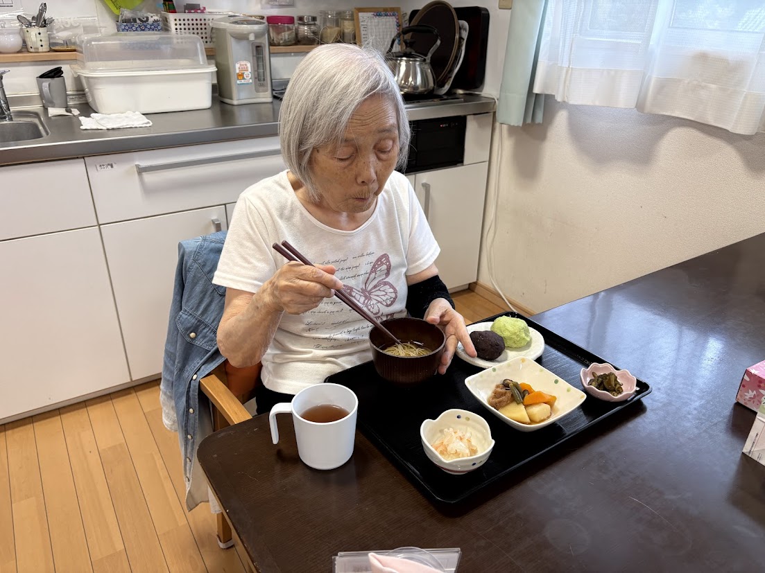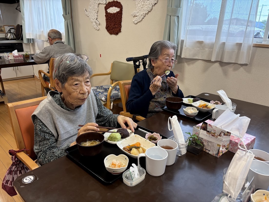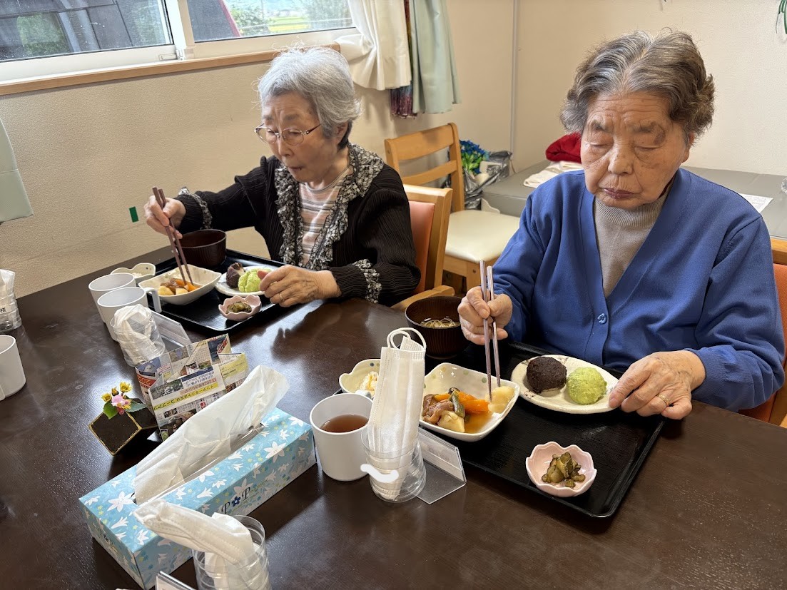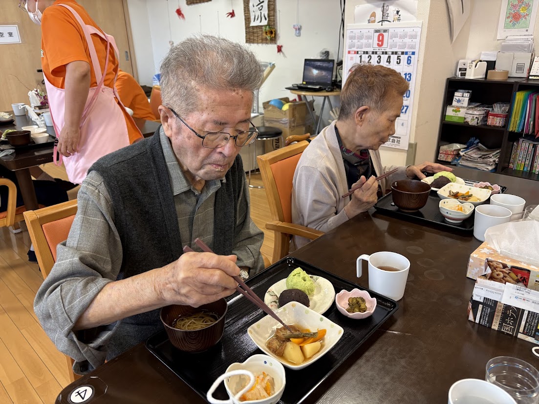 秋分の日+お誕生日メニュー🍱 投稿公開日:2025年9月23日 みなさんこんにちは! 秋のお彼岸!秋分の日!ですね~ 今日の昼食は 9月お誕生日の方のリクエストとお彼岸のメニューを一緒にした ”おはぎ” ”あんこ”と”ずんだ2種類 ずんだは豆をつぶした手作りです(^O^)/ 「いぎなり美味いね~」 「むかし作った頃の事を思い出したわ~」 みなさん満足されていらっしゃいました。 文責:板橋 その他の記事を読む 前の投稿敬老会💃 次の投稿お散歩🚶♂️➡️🚶➡️
