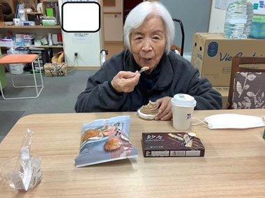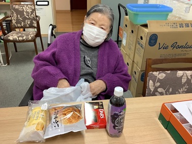 施設に戻られてから、購入したものを確認し「どれから食べようかしら」「ご飯食べれなくなるかも」と
