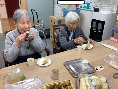 笑顔で召し上がっておりました。寒さが厳しくなってきましたが、入居者様の笑顔が多くみられるよう、