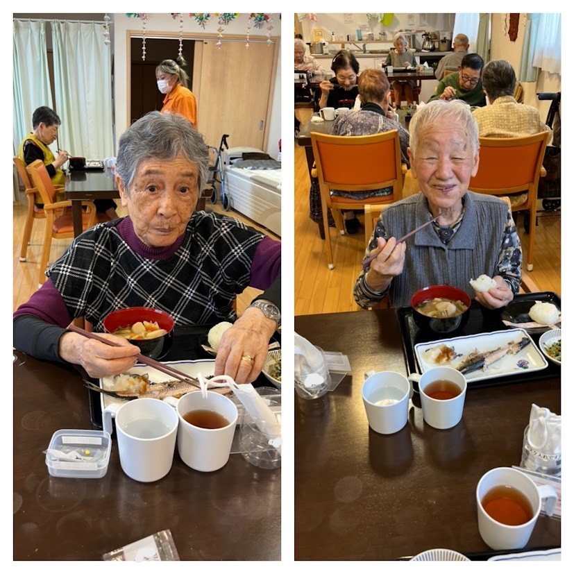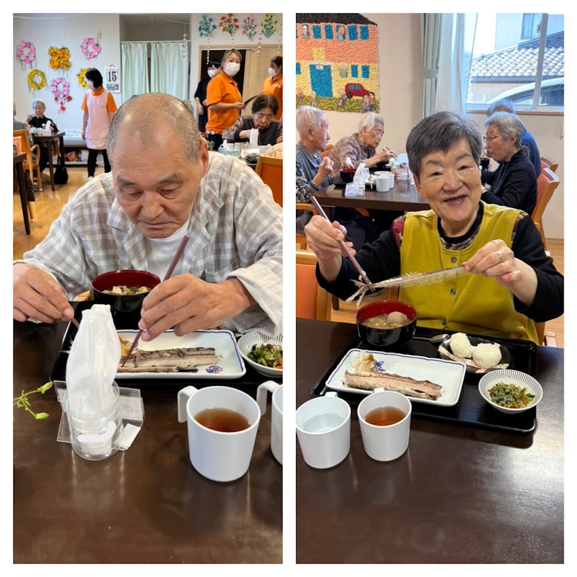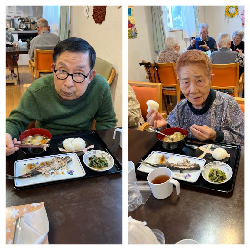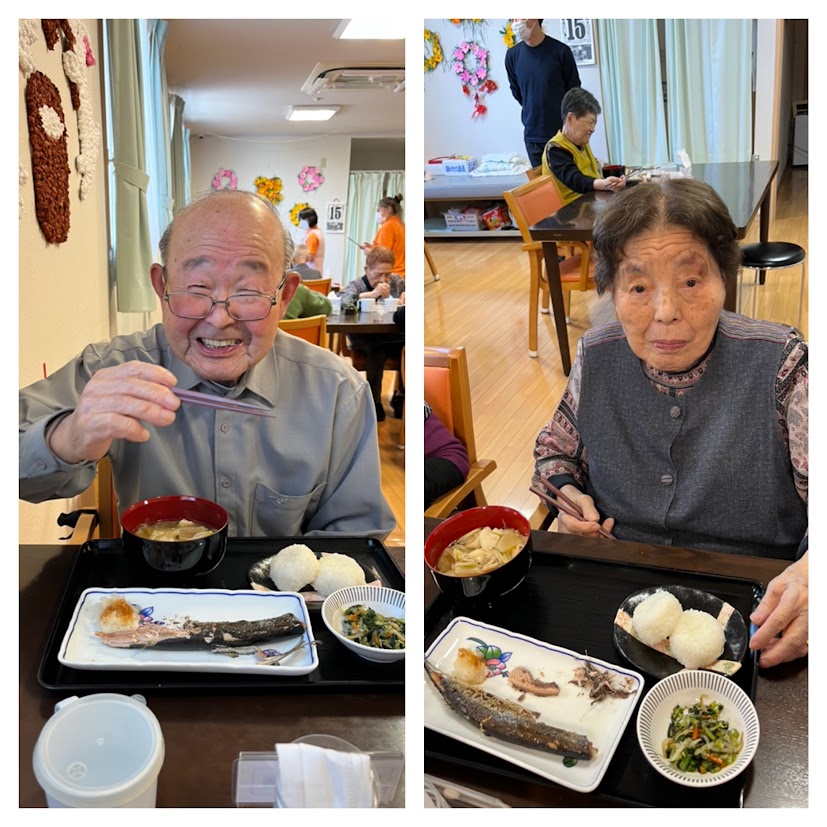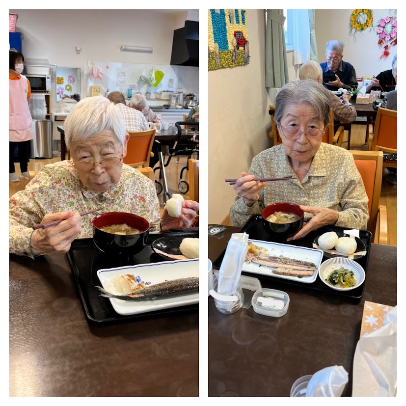厨房では”さんまの塩焼”と”おにぎり”!