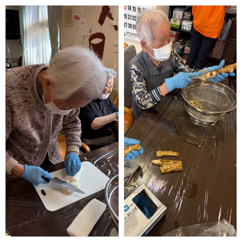 残りの材料大根、ごぼう、人参を手分けして準備